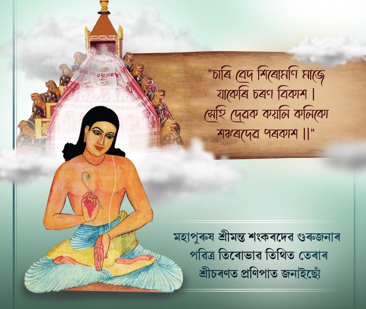 অসমীয়াৰ পৰিচয়, অসমৰ স্বাভিমান, অসমৰ সম্ভ্ৰম – একোৰেই অভাৱ নোহোৱাকৈ এটা মৰ্যদা সম্পন্ন স্থানত অধিস্থিত কৰি গুৰুজনাই অসমক জগতক পৰিচয় কৰাই দিলে তাহানিতে। তেনে সম্ভ্ৰম জাতিটোৱে আজি কিহৰ বাবে হীনমান্যতাত ভুগিছে? আদৰ্শ নে পথৰ সন্ধানৰ অভাৱত? এটা কথা কি জানে? আনৰ সাহিত্য অনুবাদেৰে অসমীয়া সাহিত্যৰ ভঁৰাল চহকী কৰা বহুজনে যদি গুৰুজনাৰ সাহিত্য ৰাজি অন্য ভাষালৈ অনুবাদ কৰি বিদ্বান সমাজলৈ আগবঢ়ালে হেঁতেন, তেন্তে গুৰুজনা পৃথিৱীজুৰি ছেক্সপীয়েৰ, কাৰ্লাইনৰ দৰে সমাদৃত হ’ল হেঁতেন। কিন্তু নাই, আজিৰ তাৰিখত ধৰ্মৰ সূত্ৰ সলনি হৈছে, সত্যৰ ৰং সলনি হৈছে, প্ৰেমৰ সংজ্ঞা সলনি হৈছে, ভালবোৰক বেয়া আৰু বেয়া বোৰক ভাল বুলি কোৱাৰ মানসিকতা বাঢ়িছে। ৰঙীন আৰু জাকজমকীয়া চকু চাত মাৰি ধৰা বহু সম্ভাৰে বজাৰ ভৰি পৰিছে। তাৰ মাজৰ পৰা কি ভাল, কি বেয়া বিবেচনা শক্তি যেন ক্ৰমান্বয়ে লোপ পাইছে। তাৰ মাজতো আমি আমাৰ আপোন সংস্কৃতিৰ পথাৰখনত থিয় দি আগুৱাই নিব লাগিব উত্তৰ প্ৰজন্মক। গীতাৰ খনৰ লগতে প্ৰজন্মক শিকাব লাগিব খোল,বৰগীত,পয়াৰ……. তেহে জাতি জীয়াব, তেহে জাতি বাছিব… অন্যথা অসমীয়া গিৰি কেৱল ফেচবুকৰ ৱালতে ৰব।গুৰুজনাৰ পবিত্ৰ তিৰোভাৱ তিথিৰ দিনটোত নিজকেই এবাৰ প্ৰশ্ন কৰকচোন। গুৰুজনাই দি যোৱা আদৰ্শ- সংস্কৃতি- সাহিত্যৰ মেতমৰা ভঁৰাল এৰি আমি কি বিছাৰি ফুৰিছো?