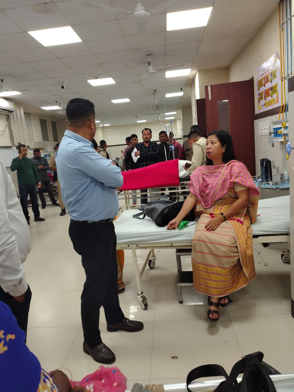 মন্ত্ৰী গৰাকীয়ে চিকিৎসালয়ত উপস্থিত হৈ কৰ্তব্যৰত চিকিৎসকসকলৰ সৈতে কথা পাতে আৰু আহতসকলে যাতে উন্নত মানৰ চিকিৎসা আৰু যতন পায়, তাৰ নিৰ্দেশ দিয়ে।